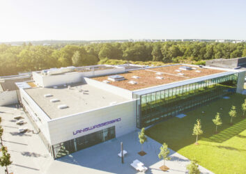 Die Langwasser-Schwimmhalle ist als kombiniertes Schwimmbad für den Schulsport und den Spitzensport gebaut worden und dient als Trainigsstätte für die Schwimmer:innen und die Triathlet:innen.
